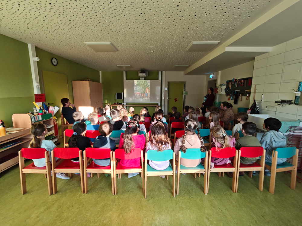 Die Kinder setzten sich auf die vorbereiteten Matten und Stühle und nun begann die Erzieherin mit leuchtenden Augen zu erzählen „Stellt euch vor, da wächst ein Baum, an dem süße Zuckertüten hängen! Er blüht und gedeiht, wenn man ihn gut behandelt.“ Die Augen der Kinder funkelten vor Aufregung.